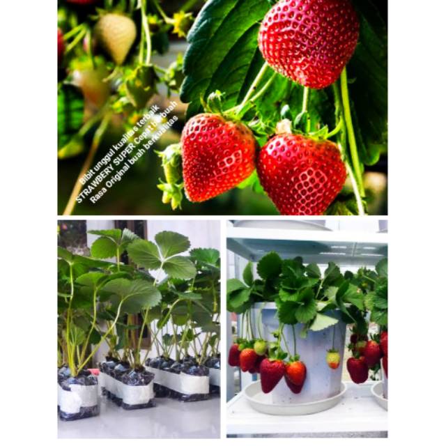Produk tanaman hias langsung dari petani tanaman hias Isi 50 benih biji bibit strawberry merah panda farmrp9.700: Bibit strawberry california jumbo manisrp5.301: Strawberry yang berukuran paling besar, rasa manis dan cepat berbuah. Kamu harus menyiapkan polybag dan media untuk mengisinya.